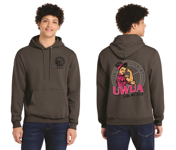 9.5 oz., 80% heavyweight pre-shrunk cotton / 20% polyester Double-lined hood with matching drawstring Spandex in cuffs and band Front pouch pocket Made in the USA Charcoal Only